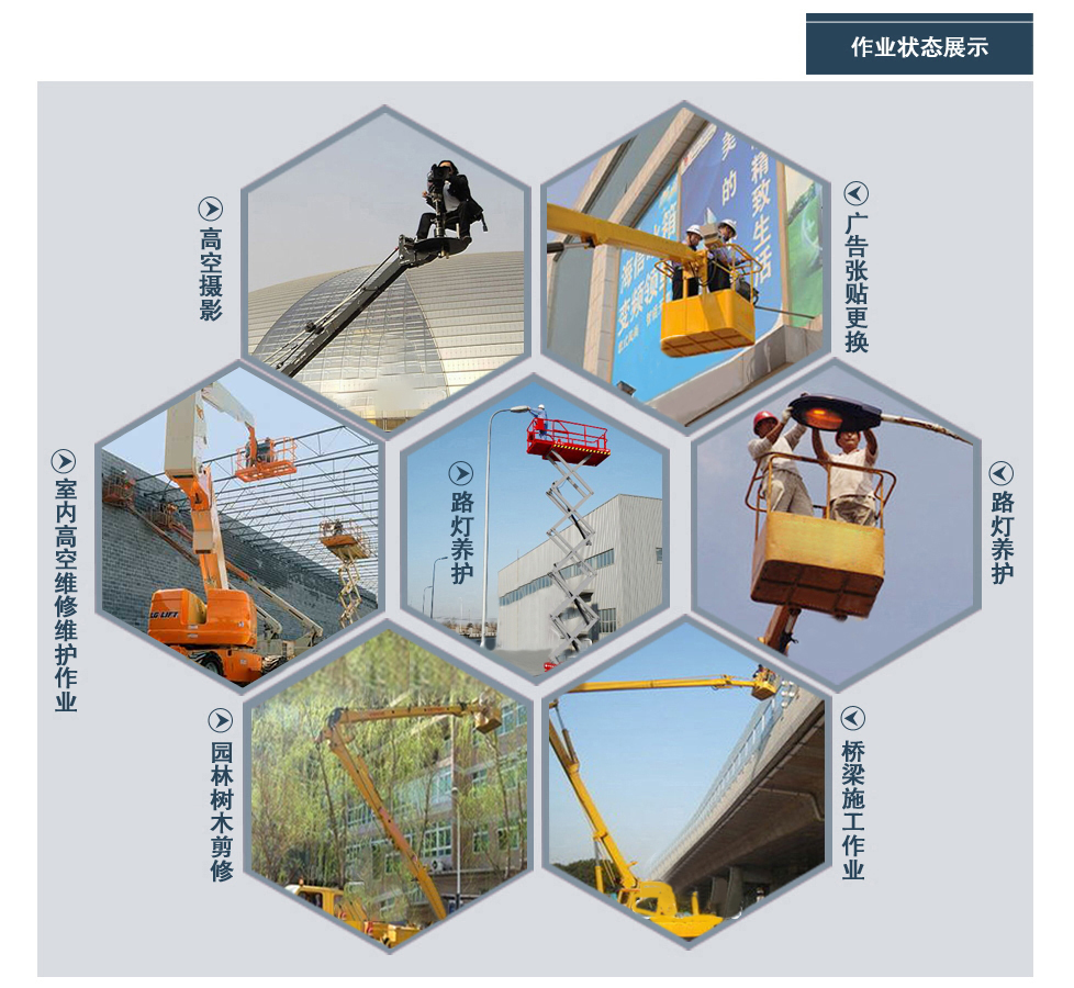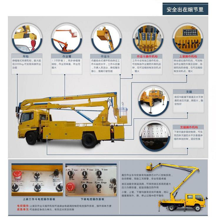 標(biāo)準(zhǔn): 高空作業(yè)車:產(chǎn)品結(jié)構(gòu)簡(jiǎn)單、堅(jiān)固耐用、操作方便可靠。獨(dú)特設(shè)計(jì)的全回轉(zhuǎn)三折臂液壓操控系統(tǒng)使工作人員在高空作業(yè)時(shí)操作更平穩(wěn),能安全有效的將工作人員送到8-24進(jìn)行高空作業(yè)或者進(jìn)行維修、安裝、清洗、攝影、造船、化工、電力、剪枝、更換路燈及其他工程搶修作業(yè)。該車電動(dòng)操作系統(tǒng)均采用防水開關(guān),避免了開關(guān)易進(jìn)水,銹蝕漏電的問題,工作斗采用管狀工作斗,造型美觀,在工作斗和轉(zhuǎn)臺(tái)實(shí)行雙位置操作,使用方便,維修簡(jiǎn)便,安全可靠。