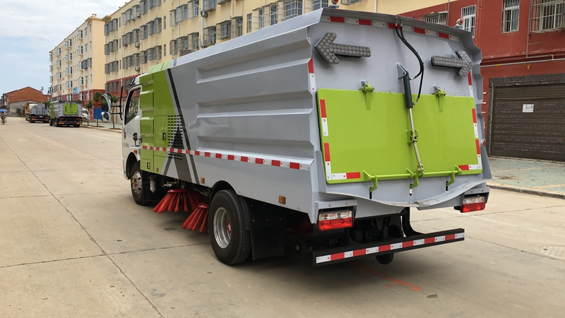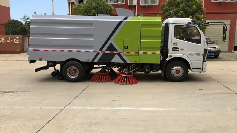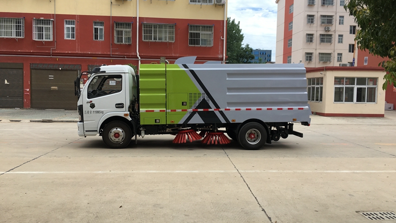 1、采用吸掃結(jié)合的方式收集垃圾,濕式除塵、電液控制,液壓傾翻卸料的作業(yè)方式對(duì)路面進(jìn)行清掃作業(yè)。