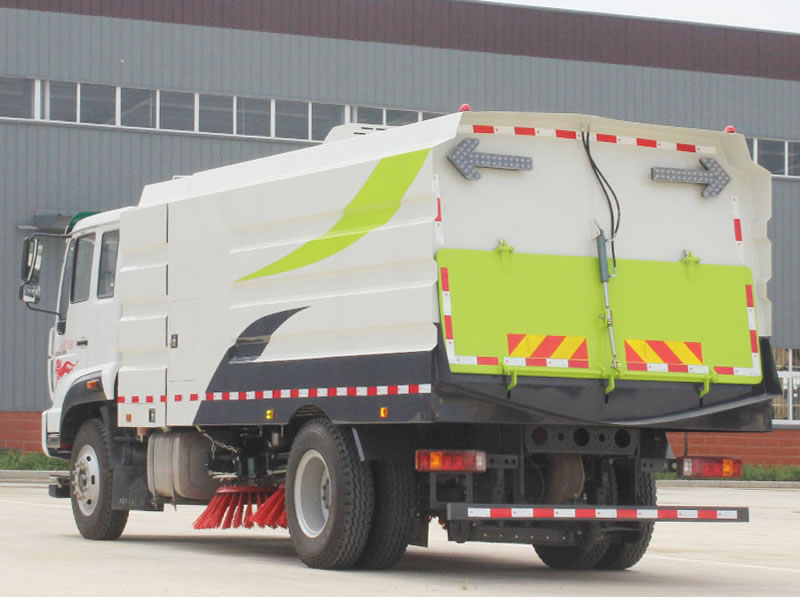 1、采用吸掃結(jié)合的方式收集垃圾,濕式除塵、電液控制,液壓傾翻卸料的作業(yè)方式對路面進行清掃作業(yè)。