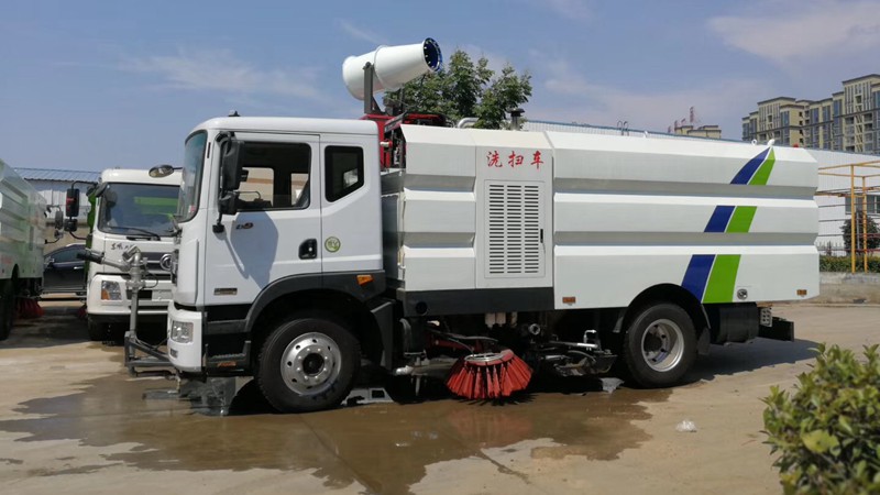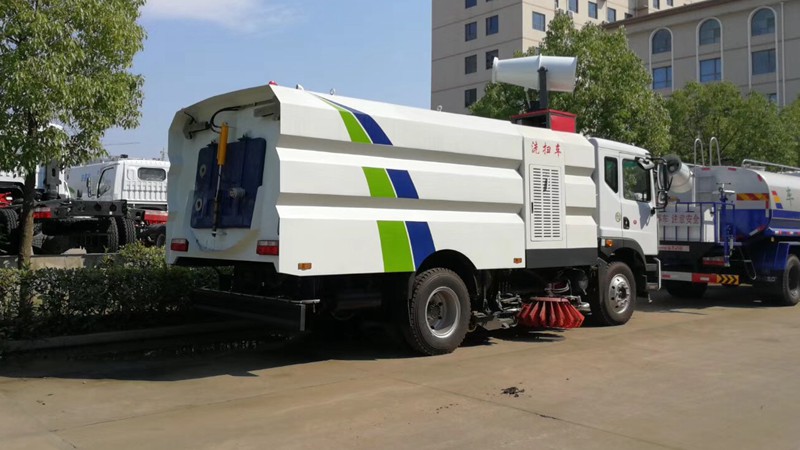 上裝配置: 1、帶2個中置掃盤;中置超寬吸嘴;雙層吸塵筒;康明斯170馬力副發(fā)動機(jī);臺灣液壓閥;大力馬達(dá);德國高壓水泵(前沖/側(cè)噴/中噴/后噴霧)/側(cè)沖洗水槍/垃圾箱自潔裝置);萬向高壓路沿清洗;威龍低壓泵(前沖),氣動球閥控制;4mm不銹鋼垃圾箱;不銹鋼水箱;德國控制器;尾部箭頭燈;機(jī)油、垃圾箱、水箱均帶防溢或低位報警裝置;倒車及洗掃狀態(tài)室內(nèi)監(jiān)視器;多種語音提示;倒車自動保護(hù)、防傾倒垃圾翻車保護(hù)、檢修安全保護(hù);20m高壓沖洗卷盤;刷臂轉(zhuǎn)動機(jī)構(gòu)使用德國進(jìn)口高新耐磨工程隔套,免打黃油;精密冷彎無縫液壓油管;運動控制器一鍵電腦控制。 ![]() 產(chǎn)品功能特點